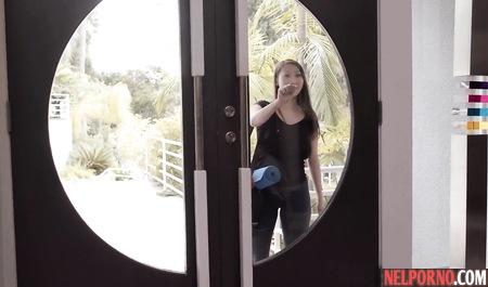 Asian girl with small Breasts straddled a huge bolt of her lover Negro