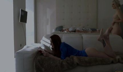 The tattooed lover decided to satisfy the needs of two sweet hotties. The redhead and the blonde are already substituting juicy caps for both Cooney and vaginal. The partner fucks both one and the other slut, bringing the cuties to a group orgasm in front of a video camera on a big bed.