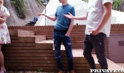 In the park, a charming blonde met two guys at once, who began to show signs of attention to her. As soon as they were at home, where they wanted to continue their pleasant acquaintance, the blonde could not refuse any of them. A girl with a hairy pussy sucked first one, then the second cock and moaned from the buzz when a cock was inserted into her hole. Tired of fucking the blonde in turn, the guys roughly fucked her with double penetration and gave her a bright ecstasy.