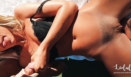 The couple decided to try something new and warm, sunny weather helped them. The lovers got out into nature, where the boyfriend, after a deep blowjob, bent his asshole with cancer and fucked hard into a wet vagina.