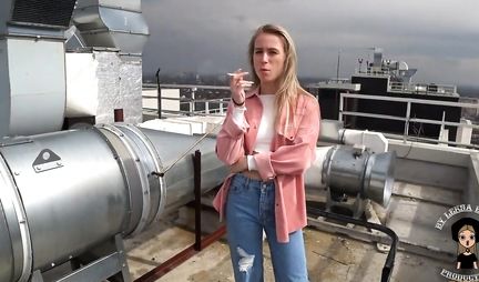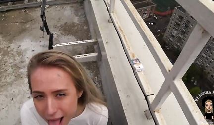 A young girl in a white top and shirt is having a good time with a guy on the roof of a building. He invited her to play a little naughty, namely to remove her homemade porn. The lecher did not refuse such an opportunity. She showed elastic boobs with protruding nipples, after that she just spread her legs and squatted down. She opened her mouth and made such a blowjob, from which the desire to cum became even stronger. The guy shoots all this on a video camera and just fills his girlfriend's mouth with sperm.
