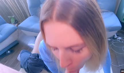 Blonde got a cumshot on her face in home porn