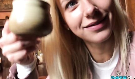 Blonde after Blowjob in the first person jumps on a cock and cums
