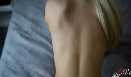 After a blowjob, the blonde got into a pose for home anal with her fan