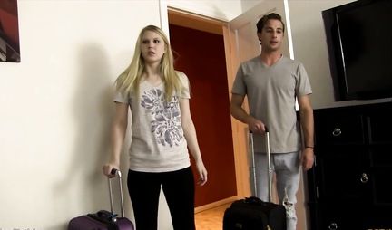A young blonde stayed at her friend's house, in whose house there was only one large bed. Of course, the friends lay down together, not even thinking that they would then be drawn to each other. As soon as the blonde saw a friend's tense penis, she did not restrain herself. She began to caress her hot penis with her hands, and the guy became more and more excited, touching her small tits. The girl let her friend's excited penis into her pussy, which was already wet and they fucked in a friendly way.