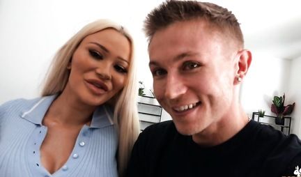 A blonde in denim shorts and a tank top pleased her lover with a gentle blowjob from the first person. The chick confidently began to move her lips along his rod, pushing the bolt up to the balls. A fair-haired girl with a tattoo on her body is ready to show herself at her best. She not only did a suction, but also spread her legs in order to just have sex in a pose of cancer. The wet crotch is open for the penis, which will not only fuck in the pose of cancer, but also sit the pussy on top so that she ends up and gets sperm.