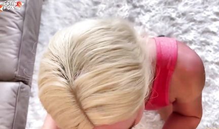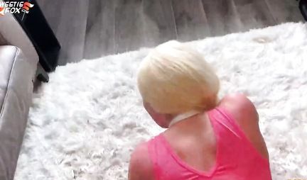 Big booty blonde decided she needed to lose some weight. While the beauty is shy about going to the gym, so she decided to do fitness at home. While the blond chick was doing the exercises, the guy was turned on in earnest, looking at her ass. The blonde had to forget about training for a while and switch to the guy's penis to treat him with a blowjob. After a hot suction, he put the girl on the floor with cancer and began to fuck her. Still, sex is better than fitness.