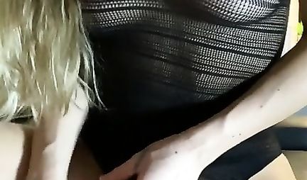 A blonde during homemade porn jumps with a wet pussy on a guys hard penis