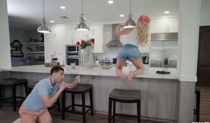 Johnny K. is definitely having a problem with sex. Thats why he follows the beautiful cleaning lady so closely and even takes her on the phone. In an impulse of love, he runs to his room to pamper his cock with a sex toy, but when Slimchik appears in his room, she jerks off the guys cock with a vacuum cleaner, and then with her own mouth. It seems that the beautiful blonde has not had sex for a long time either, because the rest of the time the couple only does what they do at different paces...