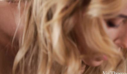 Blonde lesbian gently caresses girlfriends juicy hole