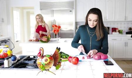 Brunette and blonde have arranged for dinner group sex with their husbands