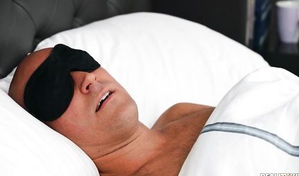 Brunette on the bed seduced her stepfather for a hot fuck with orgasm