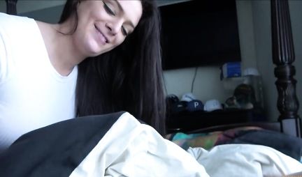 Brunette opened her mouth for home blowjob and pussy for sex close up