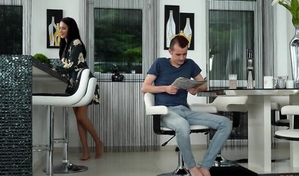 The brunette deliberately lied to her best friend that she had problems with housing and asked to spend the night with him. It's just that this slender cutie has long dreamed of trying a friend's cock, and now she had a great opportunity. In the morning, in a seductive dressing gown, the girl began to make eyes at him. As soon as she flashed her appetizing pussy in front of the guy, he pounced on her to make Cooney. Excited by mutual oral caresses, friends began to fuck in different positions on the couch.