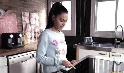 The skinny brunette just recently moved in with a guy and this is their first morning together. The guy decided to pleasantly surprise his calf in the morning and called her to the kitchen. The cutie naively assumed that now the guy would start preparing a delicious omelet for her, but he immediately treated her to dessert. The guy put a big dick in the brunette's mouth and she immediately began to suck his sweet dick. In response, he pampered his girlfriend with sensual kuni, and after that they had hot sex in all positions, getting high from each other.