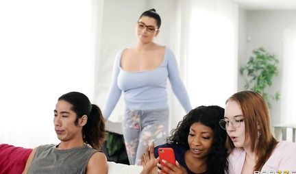 The modest brunette with glasses was always jealous of her friend, who had a handsome boyfriend. Today, a beauty with big milkings plucked up courage and decided to seduce a guy, right behind her girlfriend's back. While no one is watching, the tattooed beauty with a lush ass sucked the guy's cock, and then sat on top of him. The excited guy was completely delighted with how cool this fat woman jumps on his penis and how cool her mouth-watering boobs are shaking during the fuck.