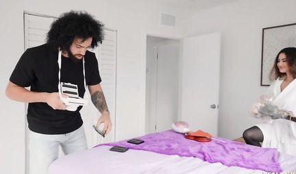 The long-haired beauty was fooling around in her room in the company of a friend. This guy could not take his eyes off the big breasts of the beauty, so she gladly flashed big milkings in front of him. Clutching the guy's strong cock between her lush boobs, she began to masturbate him, and after that she did a blowjob. After a deep suction, the guy pleased the tattooed girlfriend with gentle caresses and planted a stone boner in her cap to fuck and achieve that same orgasm together.