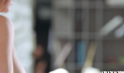 Doggystyle brunette spreads her legs for a hot fuck with a fan