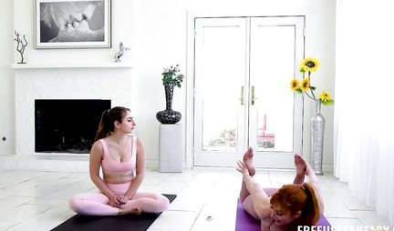 Lauren Phillips invites Penelope Kay to a yoga session with renowned hell knows what Nathan Bronson. But it seems that the adept fumbles not only in hatha yoga, but also in the Kamasutra, because in one session he manages to please two delicious beauties at once who know firsthand what violent sexual intercourse is and know how to fuck with a plus.