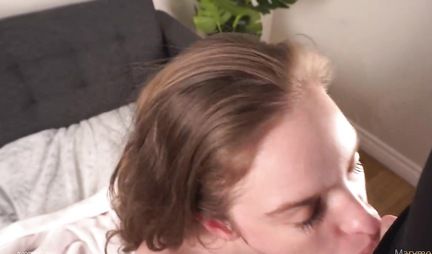The girl opens her mouth and records homemade porn blowjob for a hard cock