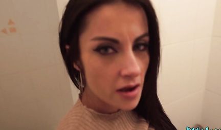 A brunette on the street shows a pick-up artist huge milkings of the fifth size. At the same time, she poses and allows them to be touched. A couple retires to a public toilet, where a stranger strips completely and fucks a stranger in the first person. She sucks a long penis and becomes cancer. The member of the stranger completely entered the tight hole of the brunette and again she takes her cheek. The chick inserts the cock between the tits and jerks off until she takes the cheek again and brings the partner to a violent orgasm.