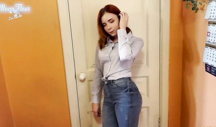 While the guy was not at home, the red-haired cutie was so excited that after that she wanted to fuck. The guy did not have time to return home, as she immediately dragged him to a comfortable sofa in order to satisfy her sexual hunger there as soon as possible. The red-haired cutie rather pulled off her jeans and began to masturbate her anal hole with a transparent dildo, and moan from the buzz. But the young chick experienced real bliss when the guy's strong penis was in her ass and it was anal ecstasy.