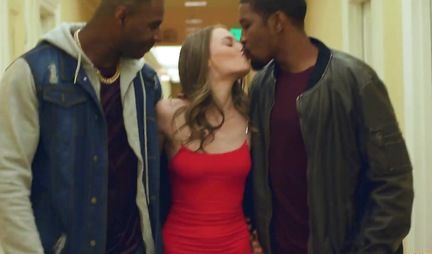 Two pumped Negro decided to have a great time in the company of a young brunette. The girl started to twirl that one person, then another, and then spread her legs and took a strong aggregates. The girl moans and gets an orgasm from double penetration and a huge amount of sperm.