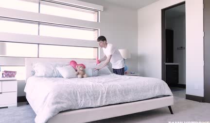 The stepbrother loves to joke with his sister and does it in a very unusual and even sophisticated way. So, today he gives a girl an artificial penis, and when she discovers it, he jokes and laughs. But all this continues until the stepmother appears and forces the stepbrother and sister to have sex. At the same time, the milf herself makes sure that everything is in order. Well, how else can you teach them to have intercourse properly?!