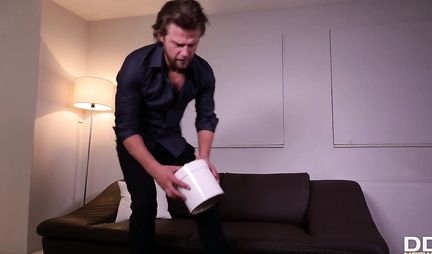 A juicy blonde in snow-white lingerie and lace stockings with garters decided to please her lover with a solo handjob. She took a long dildo and began to rub her crotch with it. The girl aroused herself and began to plant the penis more intensively in the hole. She fucked a young man with a wet pussy and gave herself a deep throat fuck. The girl did not stop there and continued to fuck the man either with a deep throat or with a cream cap. From fucking in the ass, the girl reaches its climax.
