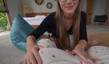 The dude has been living with a new girlfriend for a week now, whose name is Emilia Zaika. Whats good about her is her long legs and the ability to give a wonderful blowjob. Therefore, when a girl is in a good mood, like today at 02:27, she, without much foreplay, pulls off the man’s pants and begins to suck his dick. But now at 04:51 she pulls off her transparent panties and finally sits on the excited penis. Jumping on him, the bespectacled beauty soon brings her friend to the point where he violently cums on her face, staining the glasses.