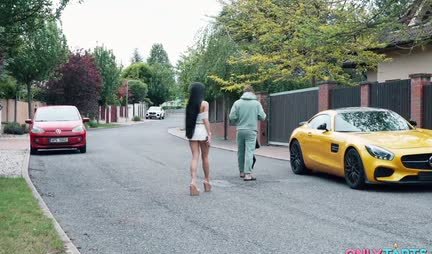 Long-haired brunette gives a great blowjob to a rich boyfriend