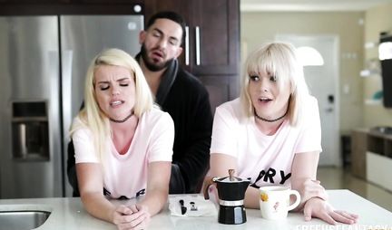 Two young blondes in the kitchen flirted a little with a man and thus aroused him to the limit. As soon as the chicks were ready for sex, they first took turns licking and polishing his bolt with their lips. It's a pleasant enough excitement, especially when the pigalis got into a pose and spread their legs. Their tight pussies are open, and a strong dick penetrates both one and the other gap. Group sex for such lovely ladies is a chance to experience satisfaction and maximum delight from spanking.