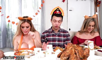 Two sexy moms with big tits and tattoos on their bodies decided to please the guy not only with a holiday, but also with group sex. The ladies bent into a pose with cancer, spread their legs and began to let in a long penis to the very eggs, enjoying the jolts of a strong rod to the most poured eggs.