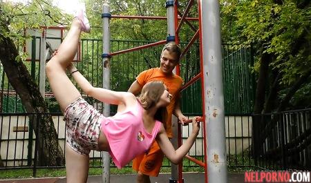 A footballer from Russia hammers a flexible young athlete in unusual positions