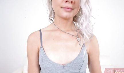 Skinny blonde Asuna Fox showed superior blowjob performance at the casting
