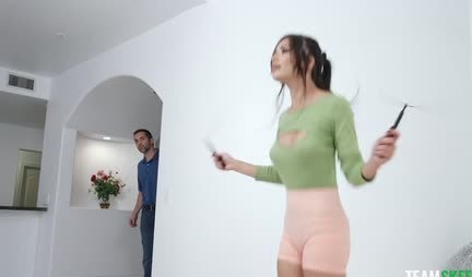 A slender neighbor goes in for fitness almost every day in short shorts and a semi-open bodice. Well, after intense physical exertion, the girl changes clothes in her room. All this is of great interest to Donnie, who lives nearby, and hangs on the cutie just as a friend. But today, his caresses are more than frank and, having aroused the brunette with caresses of the nipples, he begins to lick the beauty between her legs to make it easier to put the dick in the sweet hole.