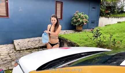 Pretty woman on the car gave herself to a stranger and dealt him a gentle suction