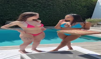 Two very attractive mature girls got a little tired and ordered pizza through the courier. But when he brought them the delivery, the girlfriends didn’t even have the money to pay for it. But still, the girls settled with the courier, inviting him to the pool and giving him a blowjob with an ending in two mouths. Would you agree to such a calculation if you were in the place of the courier?... and in the place of the girls? In the role of delivery courier - Lech Pitersky, aka Mayotny.