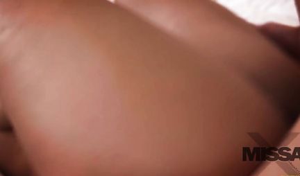 Mom with big milkings on the bed lifted her legs for vaginal with a partner