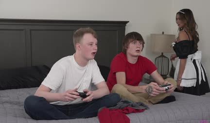 When the dude came to visit his friend, who has a game console, he almost went nuts from the fact that the friends stepmother, after cleaning the apartment, jerks off the stepsons penis. Moreover, she does not disregard the end of the guest, very skillfully seducing him into a group sex. As a result, everyone ends up during a sinful sin and I think now the comrade will be a permanent guest in this house. However, the woman herself also thinks!