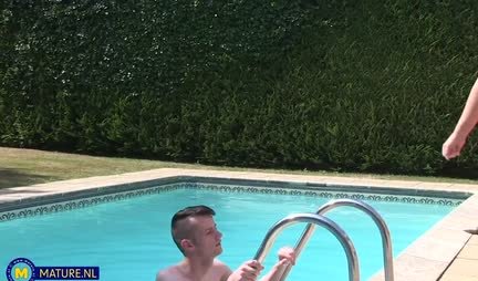 British milf Carly Simone loves swimming in the pool and everything related to water. And, to be honest, the lady has no idea where the young guy came from in this pond. But he swims with the milf and grabs her tits, which is more than exciting. Well, this time the blonde drags the guy into the house and is already here in comfort, sucks his dick and experiments with sex in various acrobatic sketches. At the same time, the young lover finally cums in his mother’s mouth and is very proud of this event.