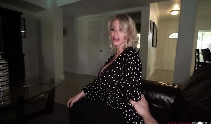 Mature blonde met with a friend tonight and apparently drank a little too much. Returning home, tipsy, the drunken mother immediately went to her stepson to wish him good night, and at the same time try his penis. The guy did not refuse an experienced woman, and simply framed his big dick for suction. A mother with big milkings sucked him so well that the guy almost finished in her mouth. Excited stepmother with loud moans jumped on the penis of her stepson and shook her milkings.