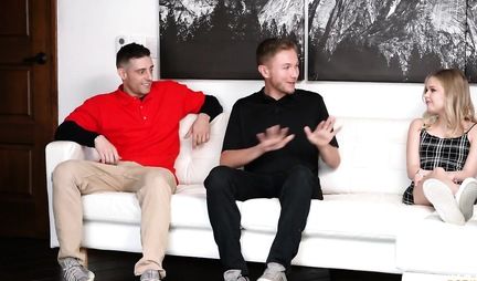 Two charming girlfriends spend a lot of time with each other. The girls are always together and their guys don't really like it. Then the cuties offer boyfriends to have group sex in order to have fun and spend time with health benefits. Of course the guys are not against such a sex experiment. The girls put their boyfriends on a big bed and start doing blowjobs simultaneously. As soon as the chicks start jumping on the risers and kissing each other, the guys really get high.