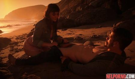 Young and beautiful brunette gentle Blowjob after jumping on a rod of a bearded man