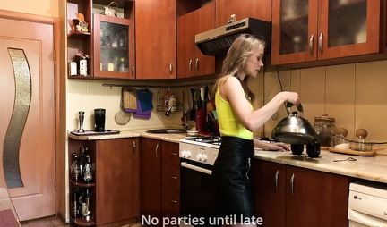 While his father was not at home, the young guy decided to drive up to his mother. The Russian blonde, of course, was shocked that her stepson had feelings for her. But after the guy admitted that he was constantly thinking about her and that he had feelings, the blonde could not resist. An experienced woman framed her hole for penetration, which immediately began to get wet from the buzz, while her stepson was pecking her with a strong dick. Right in the kitchen, standing, a young male roasted an excited stepmother, enjoying her hole.