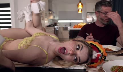 Thanksgiving Day is a great holiday, during which you can not only eat cool, but also fuck. At least Julia Robbie is cooking dinner for everyone present, but the kid and his two stepsisters are more thinking about how to have sex. As a result, all the youth do spit-swimming and, exclusively on the occasion of Thanksgiving, thank God for a great chance to have fun!
