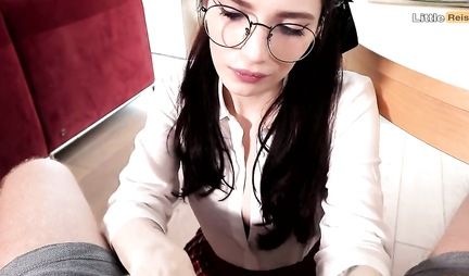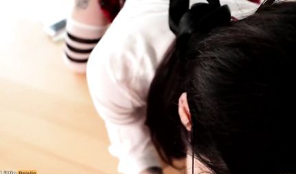 A young girl in stockings opened her mouth in order to give a blowjob to a friend. After oral foreplay, the dark-haired beauty lifted her skirt and spreads her legs in stockings. She lets the bolt into her pussy and moans every time he plunges into her wet pussy, ripe for sex.