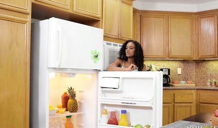 The mulatto was happy to turn on her stepbrother, the curly blond. She not only lifted her top and showed her breasts, but also began to jerk off his penis with her fingers. The girl did a great job and got into a pose with cancer in order to let his long penis into the wet and chocolate cap up to the balls.