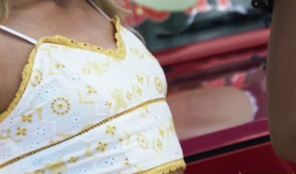 A guy on the hood of a car fucks three drunk girls after a beach party