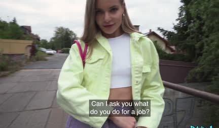 But there is such a saying that the courage of the city takes. So this pickup is the same, but nevertheless he is glued on the street to a pretty girl who came on an excursion from Budapest. Nevertheless, the girl is open for communication and for money agrees to show boobs and ass. Well, when the bets rose, the girl agreed and make a blowjob, after which the seducer tore off the cutie in Doggi Stayl with a continuation. So if you want to pick up, store money!